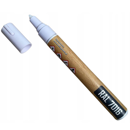 - Szary antracyt RAL 7016 sprawdza się przy grafitowych i industrialnych powierzchniach. Marker umożliwia kontrolowany retusz rys na meblach, schodach i podłogach.
